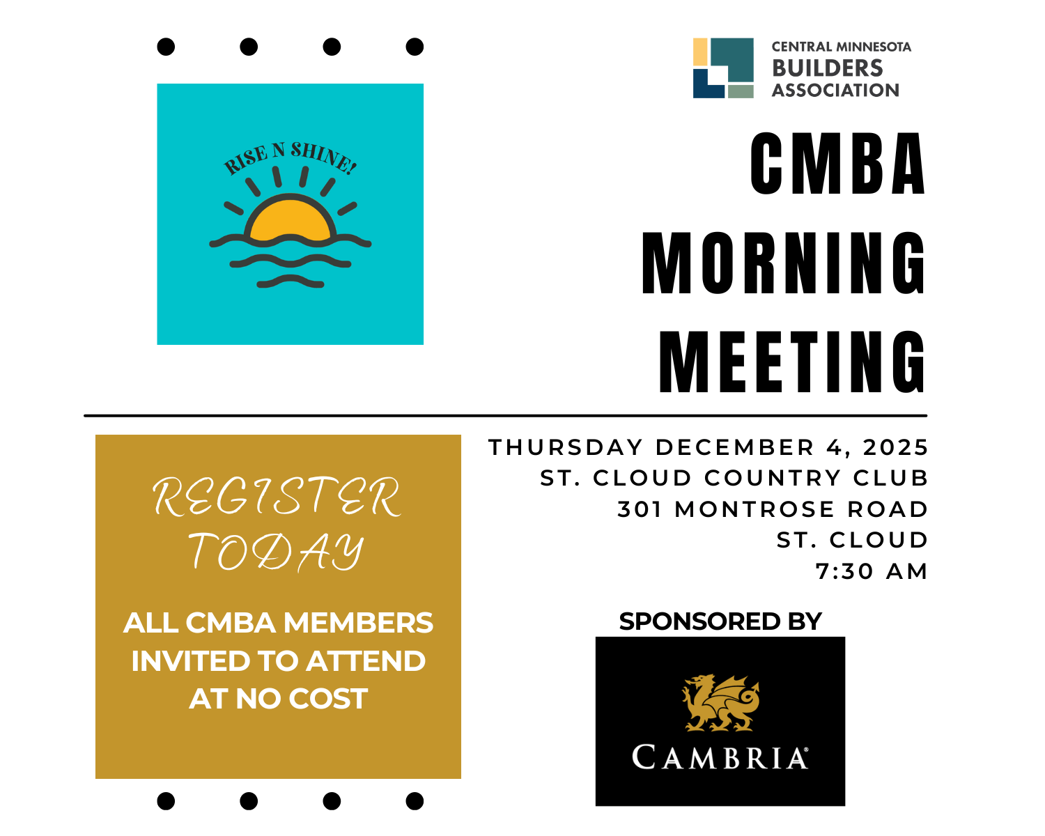 Rise N Shine Membership Meeting 12.4.25 Sponsored by Cambria USA